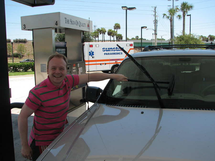 Nico putzt die Scheibe.